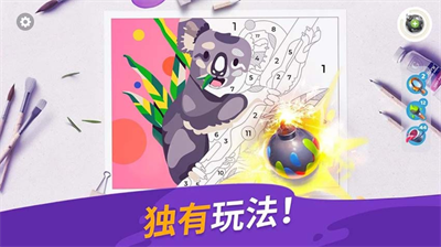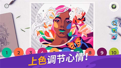 - 独创艺术系统:每完成十幅填色作品可解锁特殊装饰套装