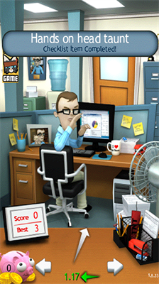 2、策略组合系统:通过观察办公室物品摆放规律,可自由组合咖啡杯、文件夹等日常用品,设计出令人意想不到的连锁整蛊效果。