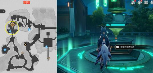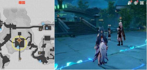 2. 沿玉界门方向前进时,需特别注意场景中的动态指引。首柄灵剑会引导玩家穿越回廊,在第二个坐标点将遭遇精英敌人彦卿。建议使用量子属性角色破盾,搭配巡猎命途输出手进行速攻,注意躲避其蓄力状态下的范围剑气攻击。