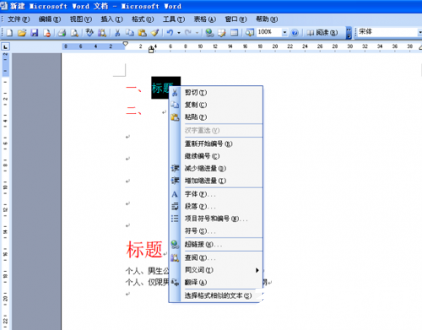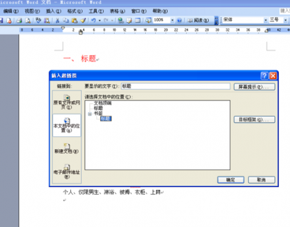 4、返回文档目录部分,选中需要添加跳转功能的【标题】文字,右键选择【超链接】选项进入设置界面。
